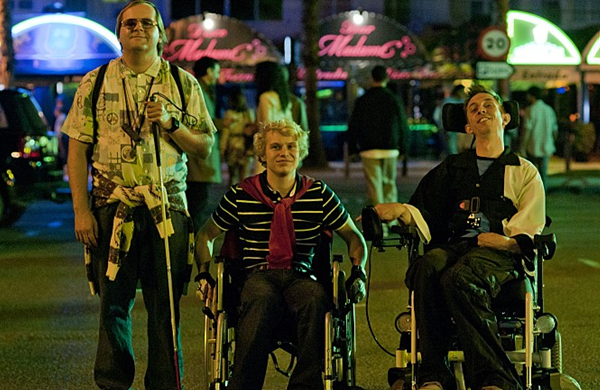 영화는 해변을 달리는 여성들의 가슴골을 비롯하여 신체의 일부분을 클로즈 업 해서 보여주는 장면으로 시작된다. 이 장면들은 전동휠체어에 앉아 있는 필립의 시점 숏이다. 필립은 척수신경장애로 얼굴과 엄지, 검지만 움직일 수 있다. 그에겐 이웃에 사는 장애인 친구들이 있다. 요제프는 시력을 거의 잃은 장애인이다. 지팡이로 보행이 가능하며, 왼쪽 눈에 약간의 시력이 남아있어 확대경을 대고 사물이나 글자를 흐릿하게 식별할 수 있다. 라스는 수동 휠체어를 타고 다닌다. 아마도 종양이 신경을 눌러 하지마비가 온 것으로 보인다.