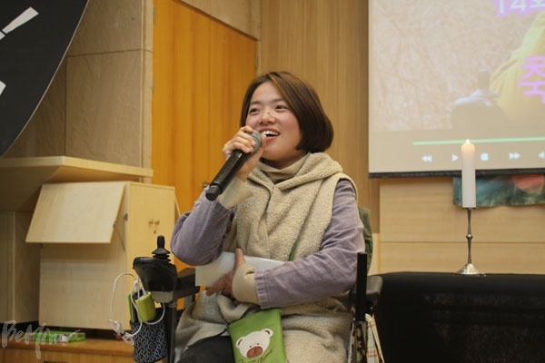 문 활동가는 밝게 웃는 얼굴로 "'살아있는 자 조직하라'는 정 열사의 뜻을 따라 더 많은 장애인을 만나고 조직하여 투쟁에 힘을 싣겠다"고 수상 소감을 밝혔다.