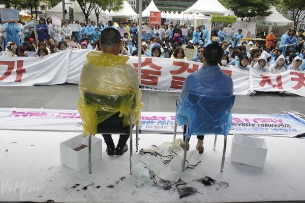 이날 첫날엔 윤종술 전국장애인부모연대 회장과 김남연 서울부모연대 대표가 삭발을 단행했다.