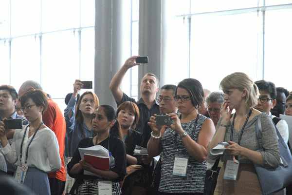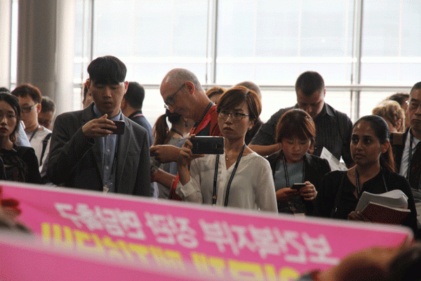 이날 기자회견을 지켜보던 많은 해외 참가자들이 각자의 휴대폰으로 영상과 사진을 찍어 자신의 SNS에 올리고 있다.